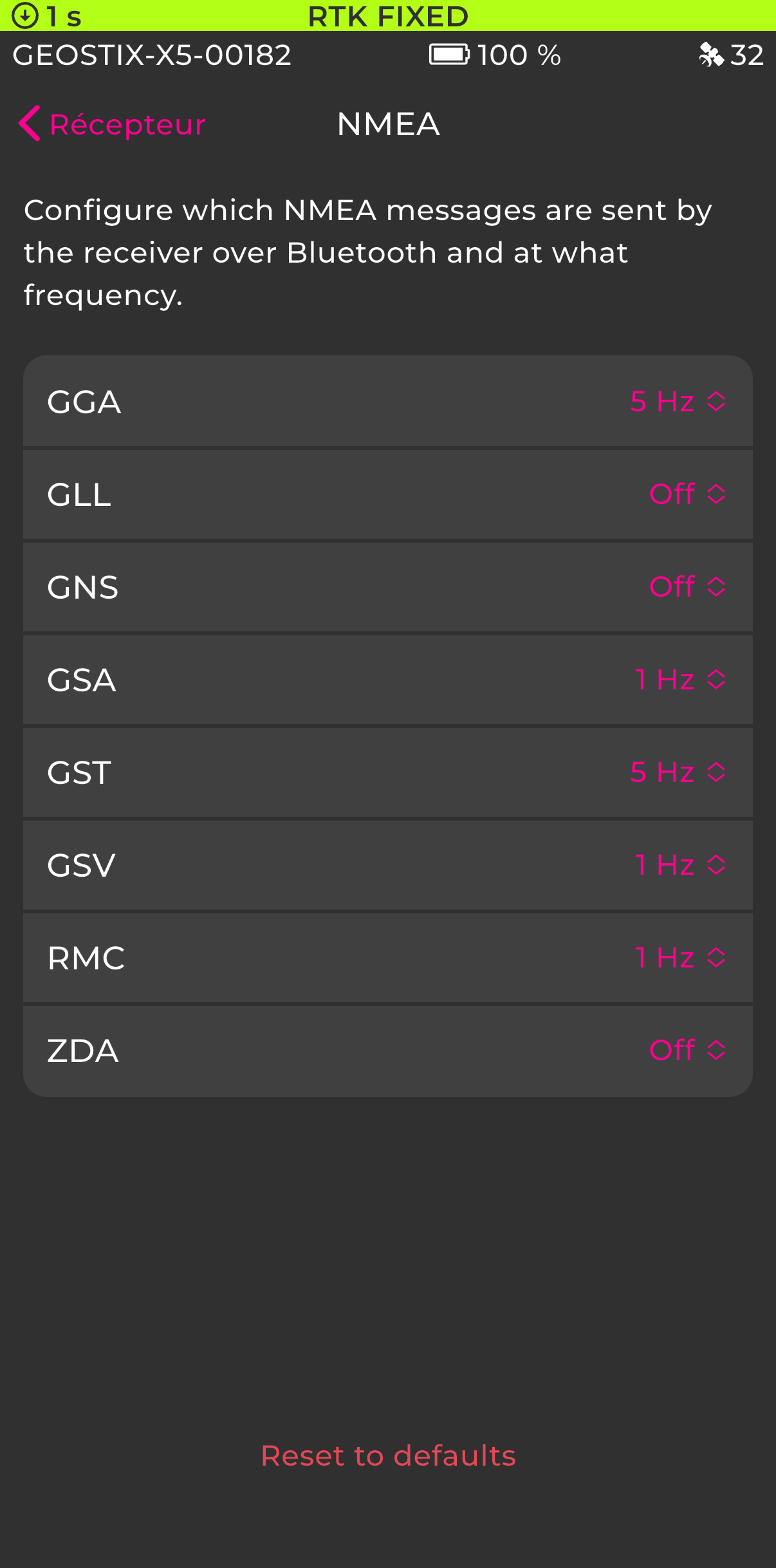 This guide explains how to configure the NMEA messages output by the GEOSTIX receiver over Bluetooth using the GEOSTIX APP.