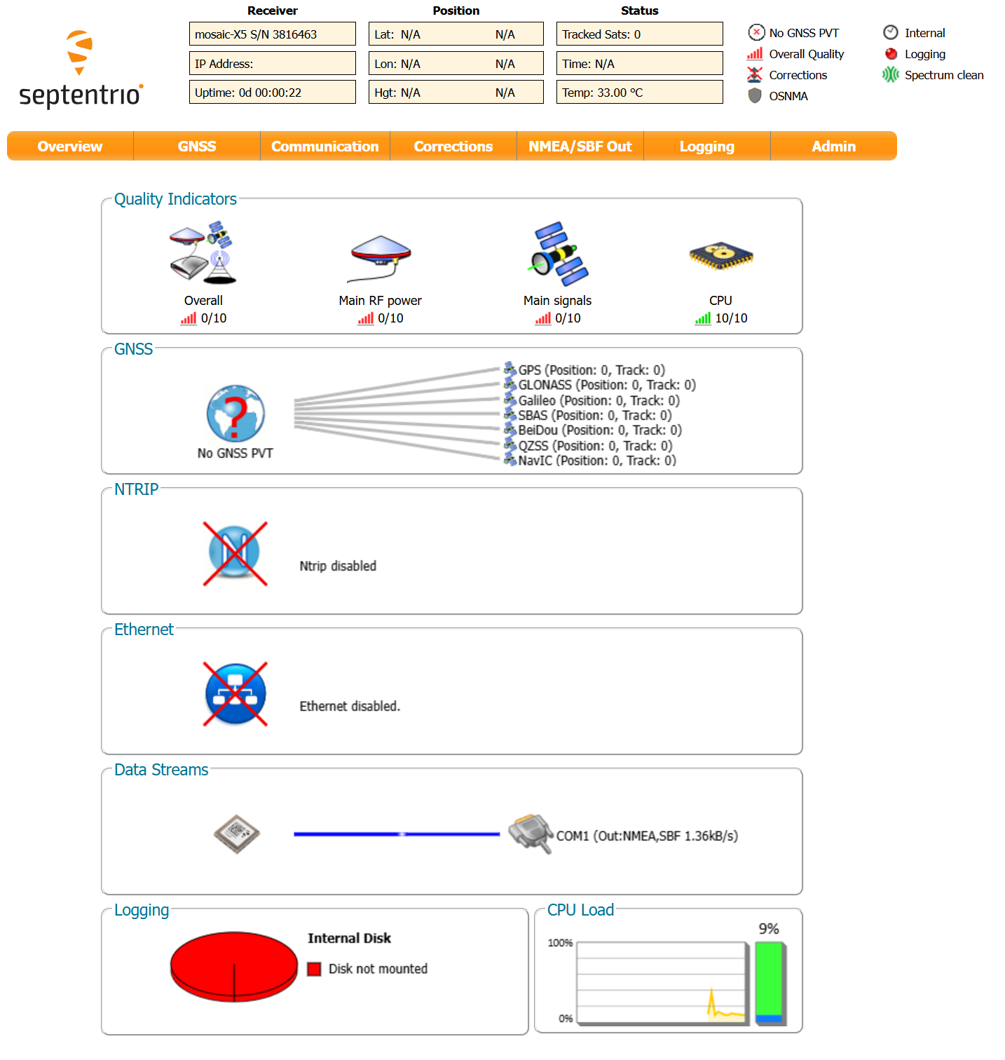 Data recording: The module is equipped with its own SD card for recording RINEX data or in Septentrio’s proprietary format (*.sbf).