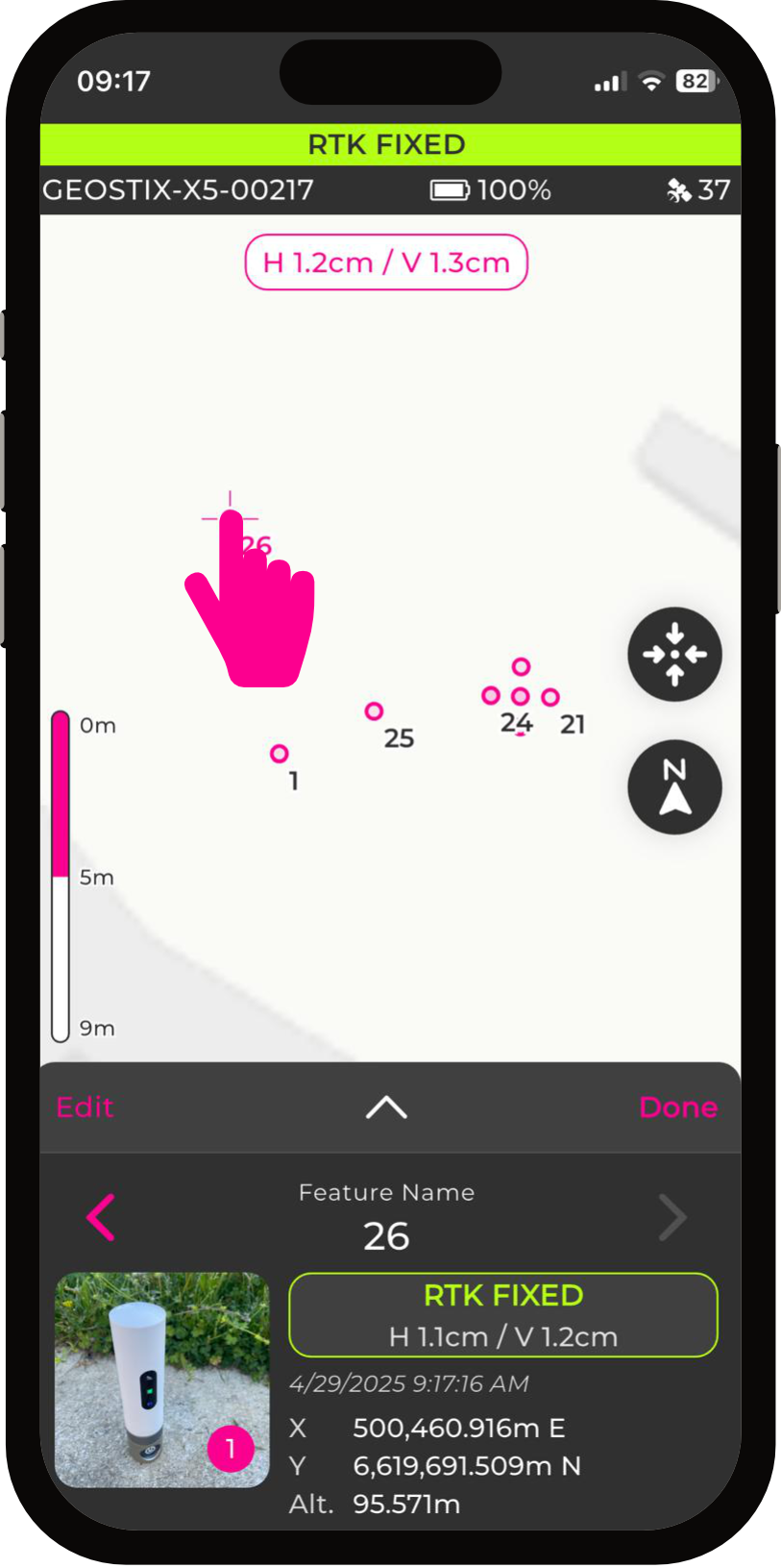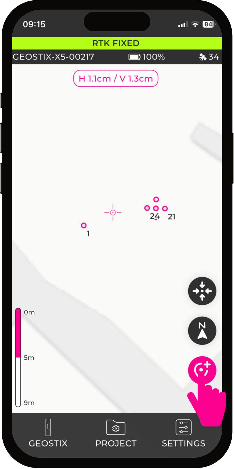 Tap the point survey icon at the bottom right, then start an averaged point survey.