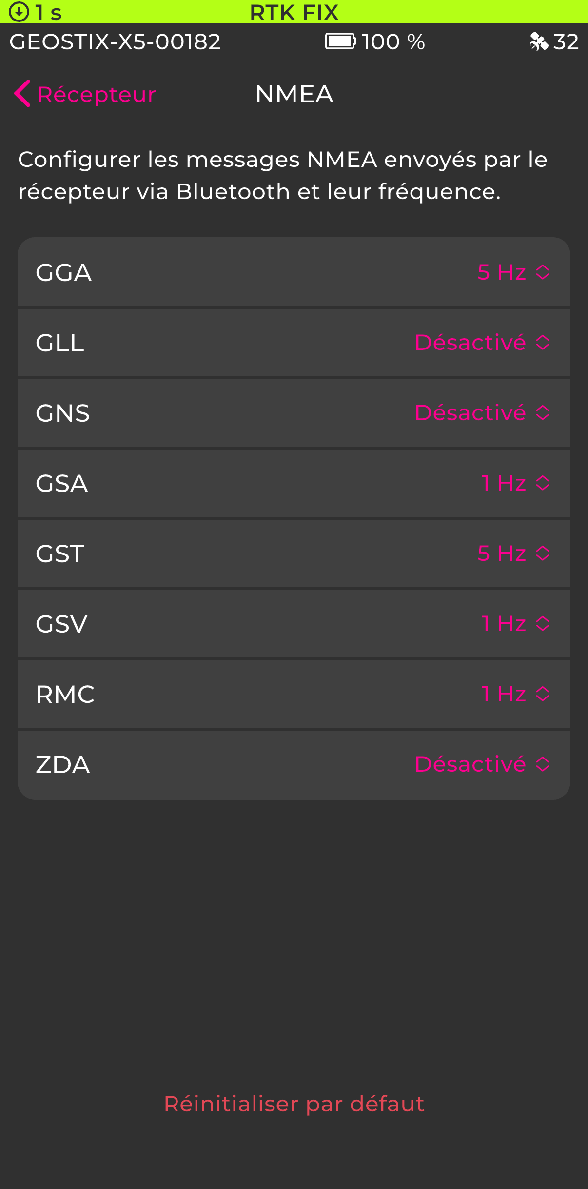 Ce guide explique comment configurer les messages NMEA émis par le récepteur GEOSTIX via Bluetooth à l’aide de l’application GEOSTIX APP.