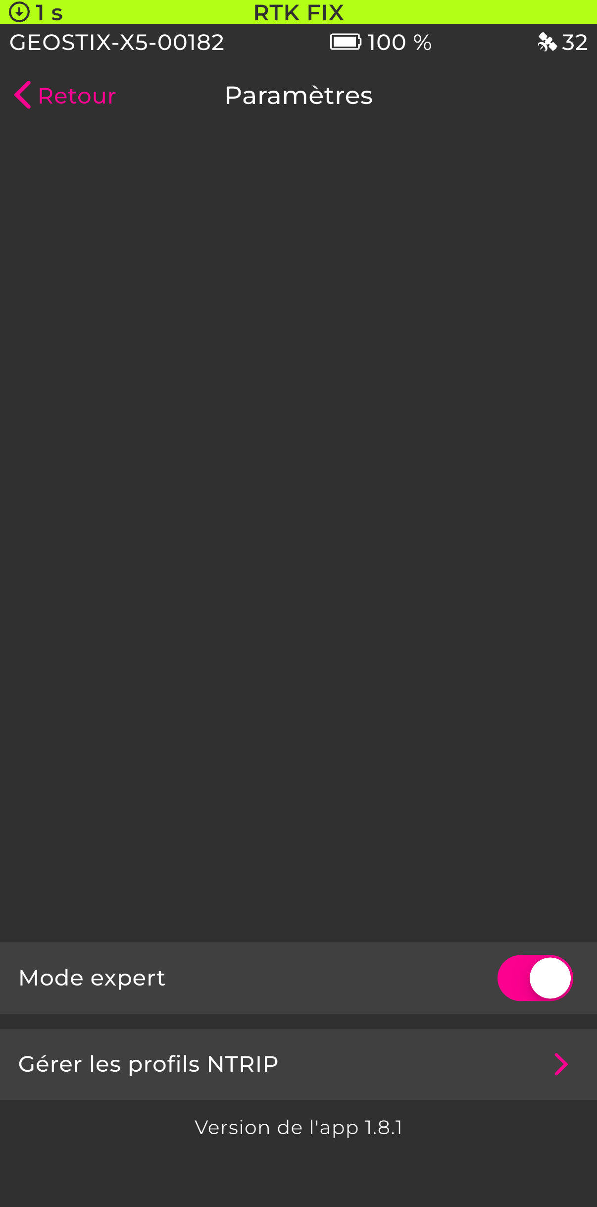 Depuis l’application, connectez-vous à votre récepteur GEOSTIX. Consultez le guide de démarrage rapide pour plus de détails.
